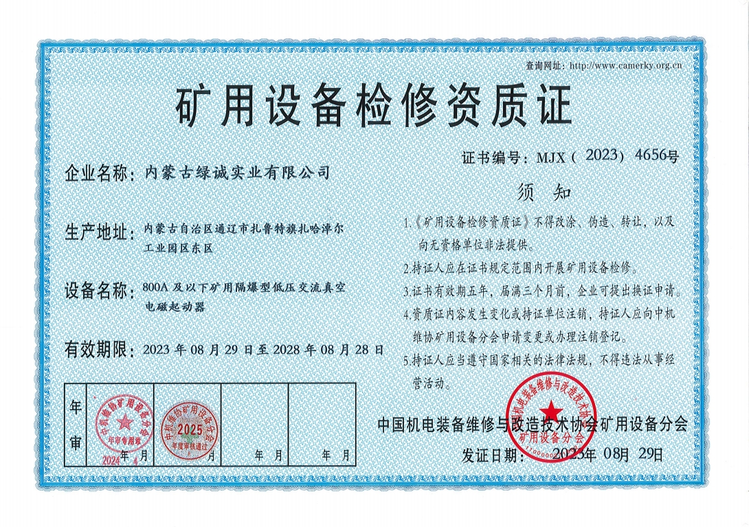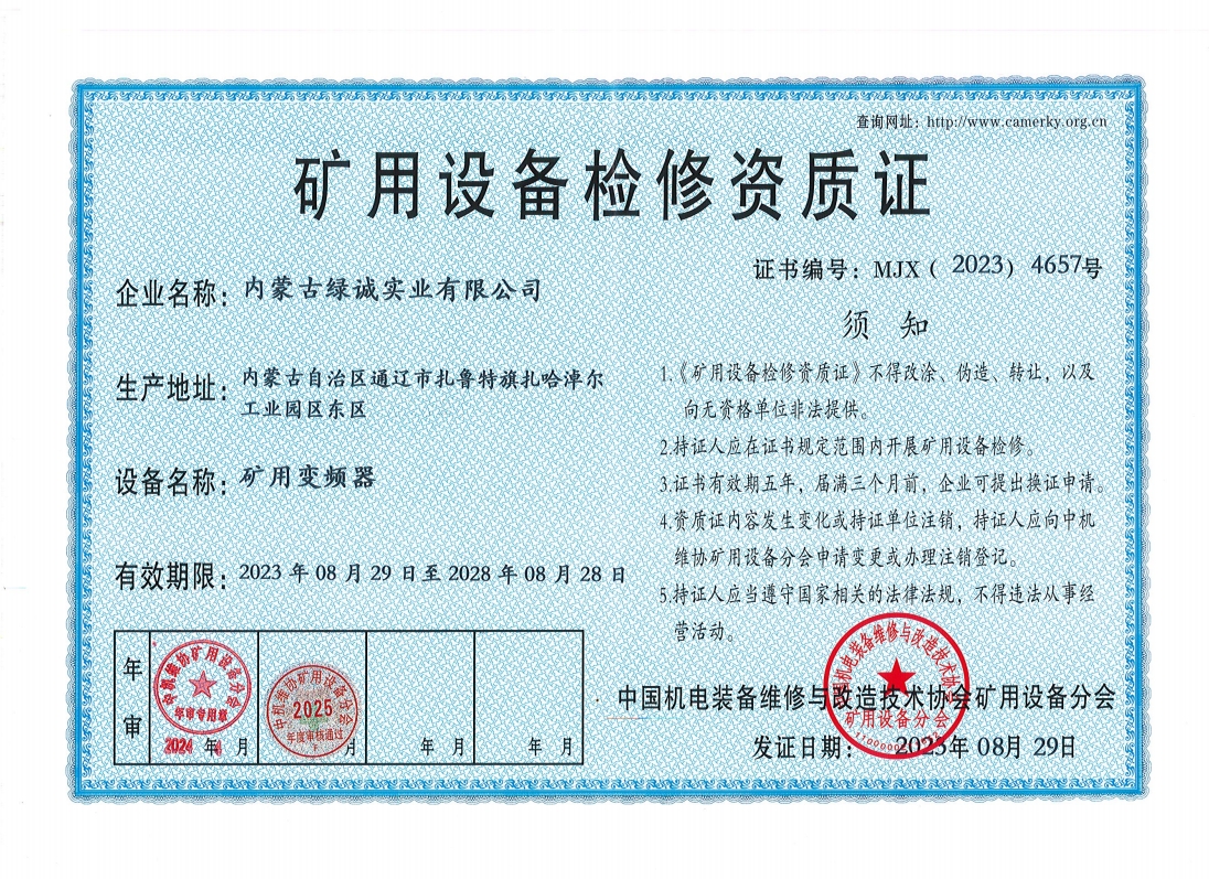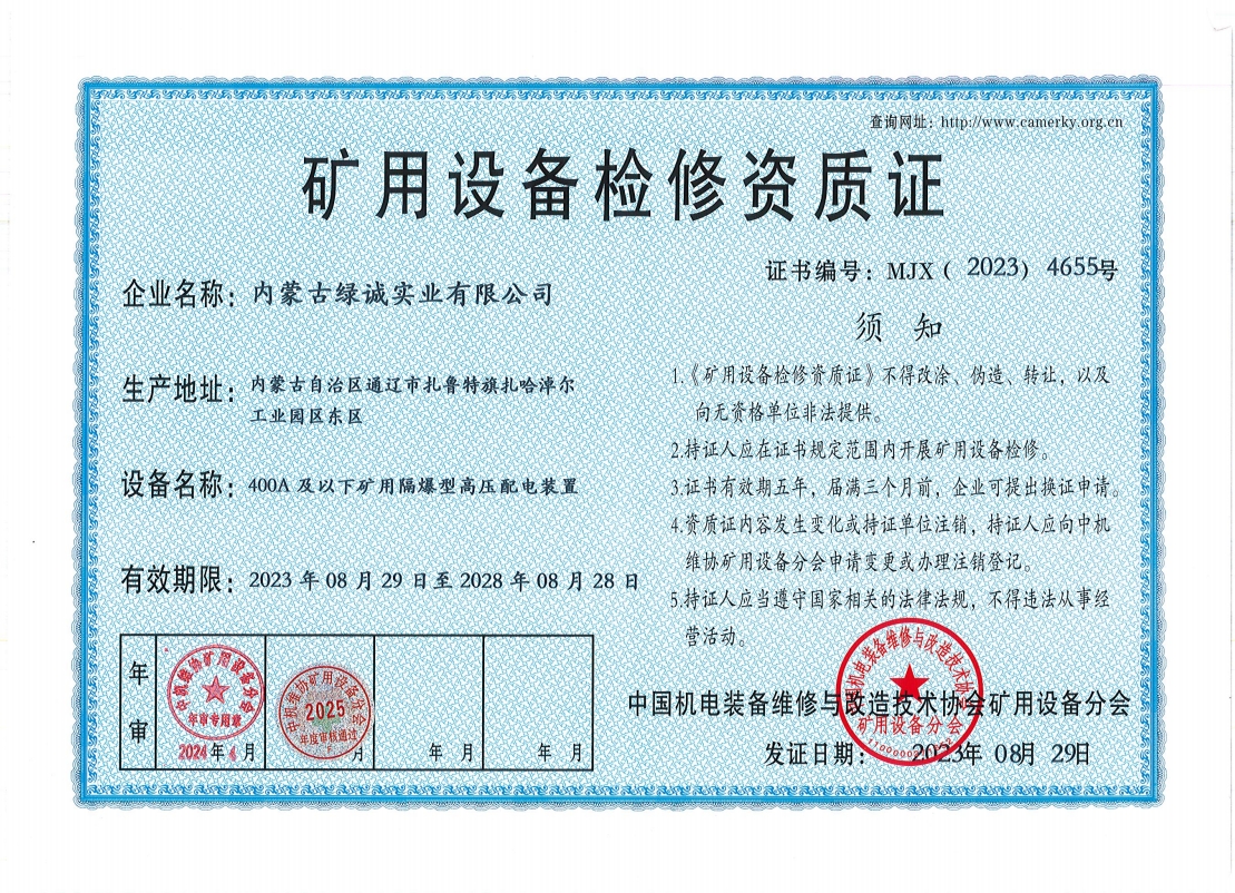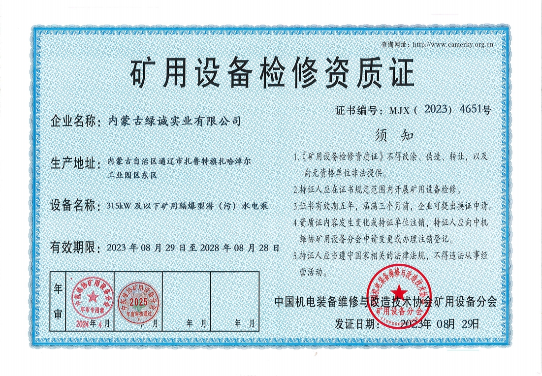 2018年我公司通過中國機電裝備維修與改造技術(shù)協(xié)會礦用設備分會審核并取得了9項礦用設備檢修資質(zhì)證書。公司本著“誠信為本 質(zhì)量為先 全心全意為客戶 ”的服務理念,圓滿完成各個廠礦的機械維修及配套服務,期待與您共同合作。